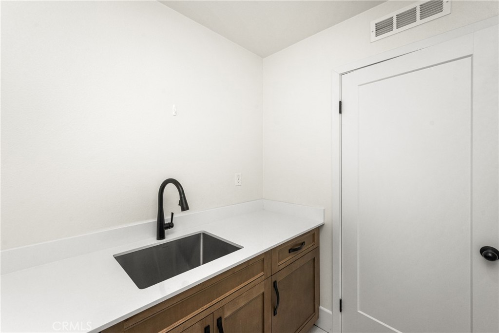 Upstairs, the primary suite includes a walk-in closet and large walk-in shower, along with two additional bedrooms, including one with its own walk-in closet. A full laundry room with sink and storage adds everyday convenience.